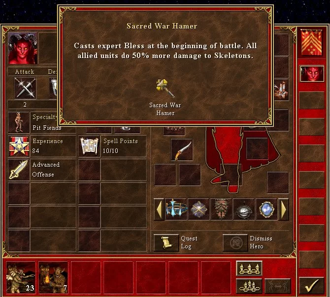 Increases hero defense skill by 2 and renders units immune to defence-reducing spells |