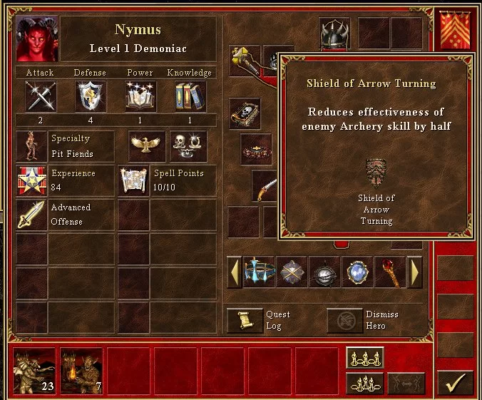 ncreases hero defense skill by 2 and reduces effectiveness of enemy Archery skill by half |