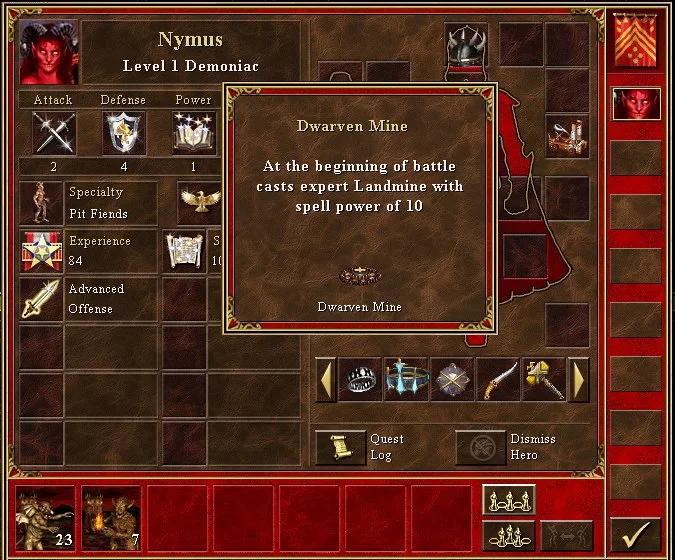 At the beginning of battle casts expert Landmine with spell power of 10 |