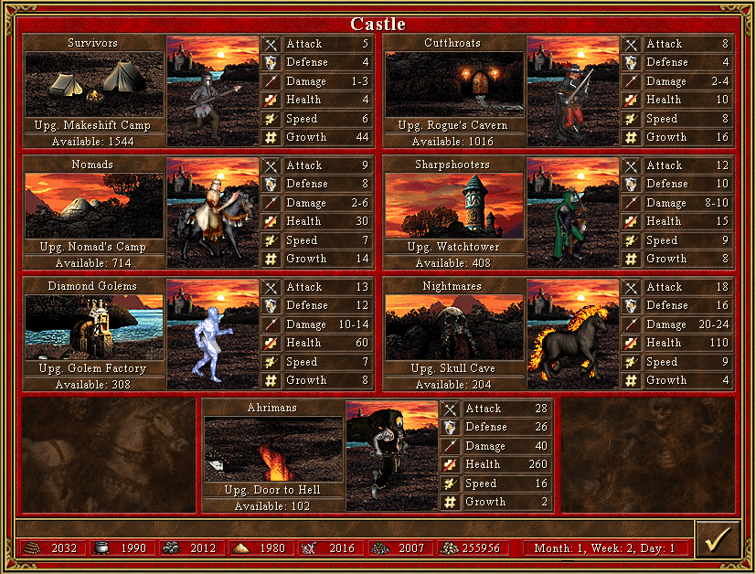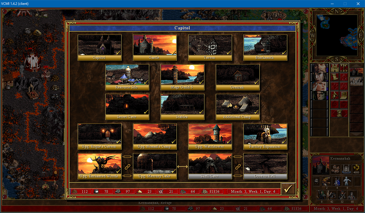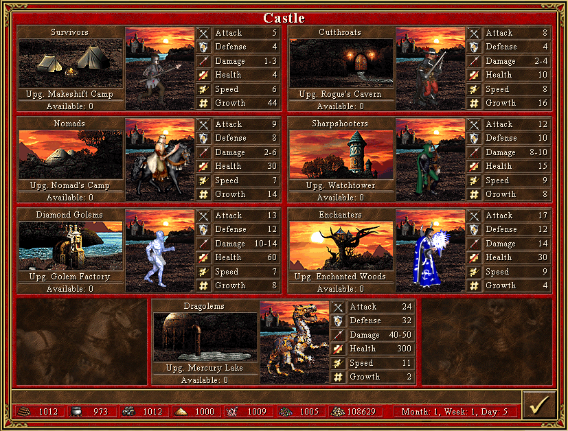 Refuge is a new town created by Yuya that takes its inspiration from WoG's Neutral Town and Heroes3's Refugee Camp. The common point of its creatures is their nonbelonging to the other factions. Thus, this castle sports concepts such as nomadism, motley armies and makeshift solutions. The town also takes elements from the Mesopotamian/Sumerian/Akkadian mythologies. Official VCMI Forum https://forum.vcmi.eu/t/new-town-mod-refugee/5002