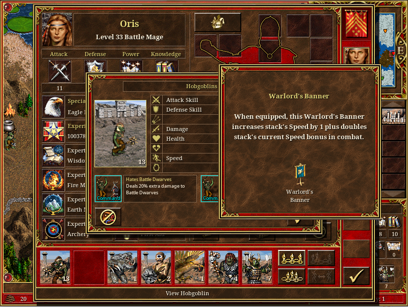 When equipped, this Warlord's Banner increases experience the stack gains from the battle by 50%. |