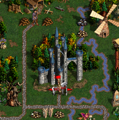 Now some town's adventure map sprites have graphics connected to the terrains on which they stand.