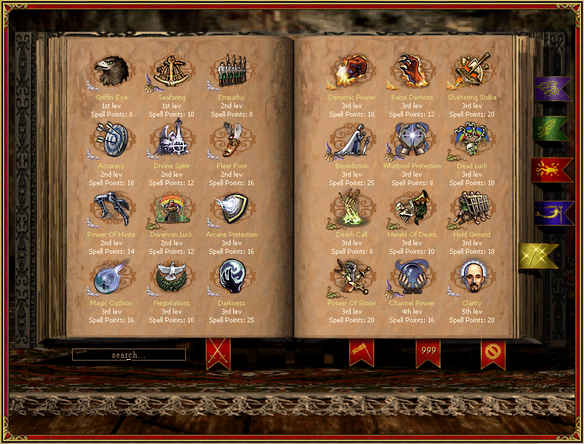 This mod adds 24 adventure map spells. Check a GitHub link for more details.Air SpellsAccuracy: All creatures receive +5/10/15% Damage when attacking at range until the end of the day.Clarity: All creatures receive mind spell immunity until the end of the day/day/week.Darkness: Creates a 1/2/3 tile radius of shroud for non-allied players with hero movement until the end of the day.Divine Spirit: All creatures receive +1/2/3 Morale until the end of the day.Fleet Foot: Gain +200/300/400 max movement points in next day.Power of Haste: All creatures receive +1/2/3 Speed until the end of the day.Earth SpellsDead Luck: Reduces maximum Luck in combat to +2/+1/negates positive until the end of the day.Death Call: Increases Necromancy skill by 10/15/20% until the end of the day.Dwarven Luck: All creatures receive +1/2/3 Luck until the end of the day.Herald of Death: Reduces maximum Morale in combat to +2/+1/negates positive until the end of the day.Hold Ground: Creatures receive +3/6/9 Defense when defending in combat until the end of the day.Power of Stone: Creatures ignore 5/10/15% of enemy Attack until the end of the day.Fire SpellsDemonic Power: Creatures receive +5/10/15% Damage until the end of the day.Raise Demons: Necromancy raises Demons/Horned Demons/Horned Demons until the end of the day/day/week.Shattering Strike: Creatures' attacks ignore 5/10/15% of enemy Defense until the end of the day.Water SpellsBenediction: Cast all spells at Basic/Advanced/Expert proficiency until the end of the day.Channel Power: Gain +5/10/15% spell damage until the end of the day.Seafaring: Removes the boarding and unboarding penalties of ships until the end of the day/day/week.Whirlpool Protection: Protects the army from whirlpools until the end of the day/day/week.Global SpellsArcane Protection: Creatures receive +5/10/15% spell damage reduction until the end of the day.Empathy: Nullifies the Morale penalty of mixing good and neutral units until the end of the day/day/week.Griffin Eye: See 1/2/3 square further into the shroud until the end of the day.Magic Cushion: Creatures receive +5/10/15% magical resistance until the end of the day.Negotiations: Reduces the cost of surrendering by -10/20/30% until the end of the day.