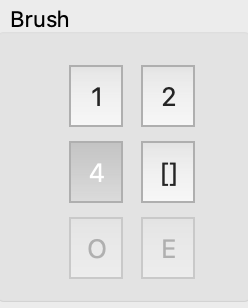 - Buttons "1", "2", "4" - 1x1, 2x2, 4x4 brush sizes accordingly